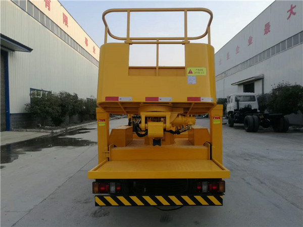 停车位置选择应是坚实地面,整车倾斜度不大于3°,并开启警示闪灯。作业高度与风力(鲍福特);风力6级及以下适宜高度10米以下作业; 风力5级能以下适宜高度11~20米以下作业; 风力4级及以下适宜高度21~30米以下作业。起动油泵,踩下汽车离合器,拉上手刹车,变速箱挂空挡,扳动液压油泵离合拉杆,使液压油 泵处于工作状态。液压油泵运转2~5分钟后,方可操纵各动作手柄。高空作业车的操作,应经培训并持有操作上岗证人员负责。操作人员要精神集中,防止误操作并严格禁酒后作业。作业时首先放下支腿,必要时在支腿掌下放本垫,确保车辆处于水平状态。操作手柄时要平稳,切勿急速迅猛,以免导致作业臂惯性摆动过大及意外事故。要严格按照设备规定的技术参数及作业范围作业。作业斗(平台)上工作人员要系好安全带。升降作业斗(平台)时,应使上下臂交替动作,以保证作业斗(平台)处于佳升幅半径状态 ,严禁将作业臂作其它用途。作业时,操作人员要注意斗(平台)、臂与高低压导线、电话线及建筑物、大树、广告牌、灯 饰等物的安全距离。当值司机,负责地面并注意往来车辆的安全防护工作。使用作业高度25米以上作业车,除设置好安全标志及护栏外,地面监护人除司机外,还要设1-2人专责加强监护。作业过程中,若发现液压系统有异音或突然外漏油液,应即停止工作,待检查或修复后,方可 继续工作。.液压系统出现故障,作业臂不能动作时,应设法使作业斗(平台)上工作人员安全撤离,并通 知专业维修人员处理。作业完毕,作业斗(平台),作业臂复位,收起支腿,并脱开液压油泵,松开手刹车,方可起 动行车。其它 高空作业的作业斗(平台),作业臂及支腿应有反光安全标志。高空作业车应配备有三角(轮胎)垫木2件及支腿垫木4块。车上应装置水平标志。