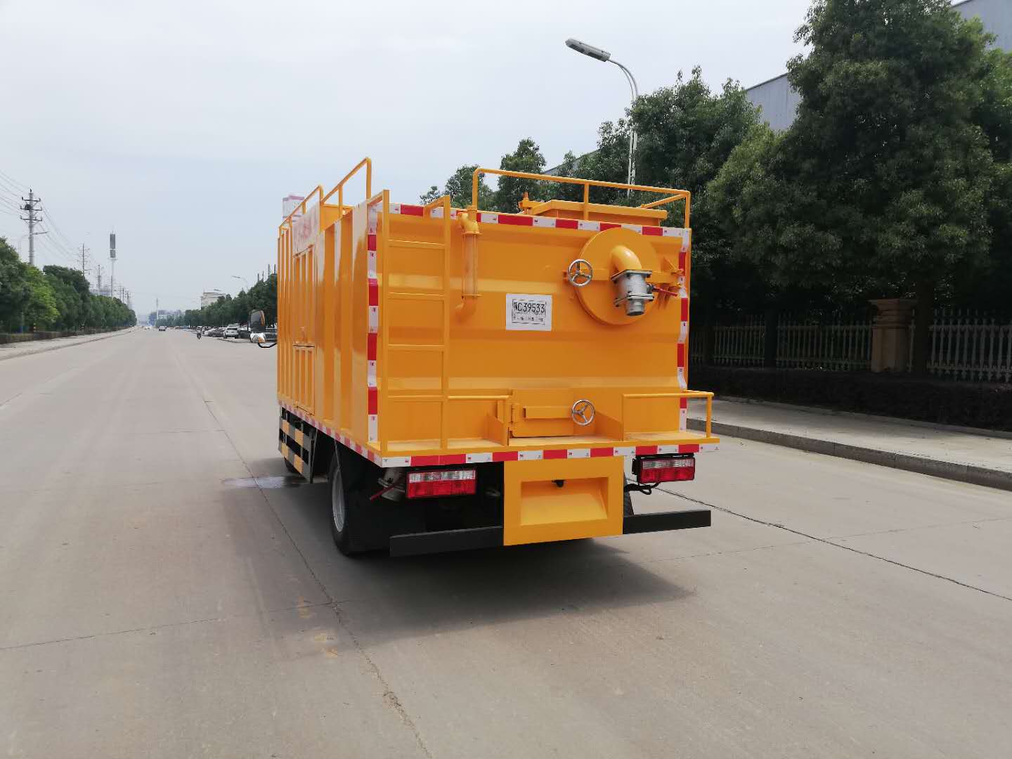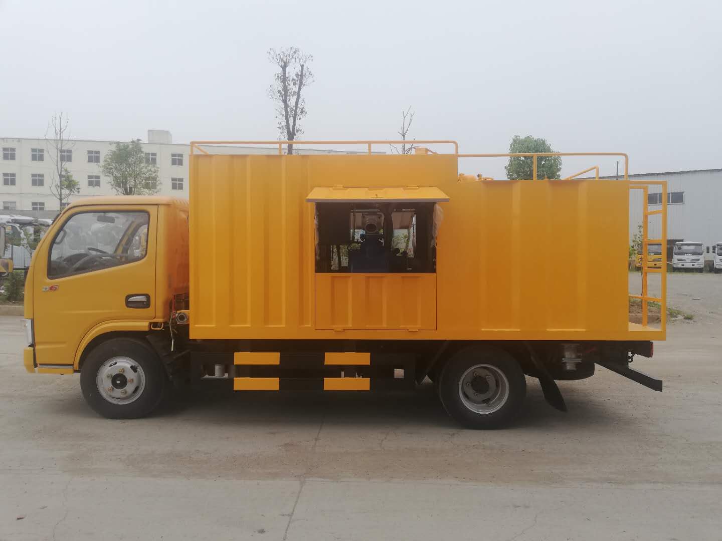 污水处理车采用东风多利卡底盘,整车长为5.995米、宽为1.99米,高为2.75米。可上蓝牌,有免征公告,能够在市内使用。该车是我公司专门针对环卫疏通保洁公司设计制造的,采用圆筒滤网加无轴螺旋的结构对化粪池的污物进行处理,实现固液分离,可即抽即排。抽出的污物不需要 像传统的吸污车那样运到另一个地方倒掉,可当场处理,处理后的污水通过市政管网排走,粪渣可直接打包,当生活垃圾处理。即节省了运输费用,又提高了处理速度。污水处理车即可以靠车身主发动机提供作业动力,也可外接电源使用电机提供作业动力,非常方便。采用水环真空泵进行持续增压,自吸高度可达9米,即使吸污管半管吸污也能保证有效吸取。采用专用防堵设计排污泵,使其能在边吸边排的过程中防止泵体被堵而影响作业,处理速度可达80-100m³/h。该车可根据客户需求,加装高压清洗泵,使其具有高压清洗、管道疏通的功能。